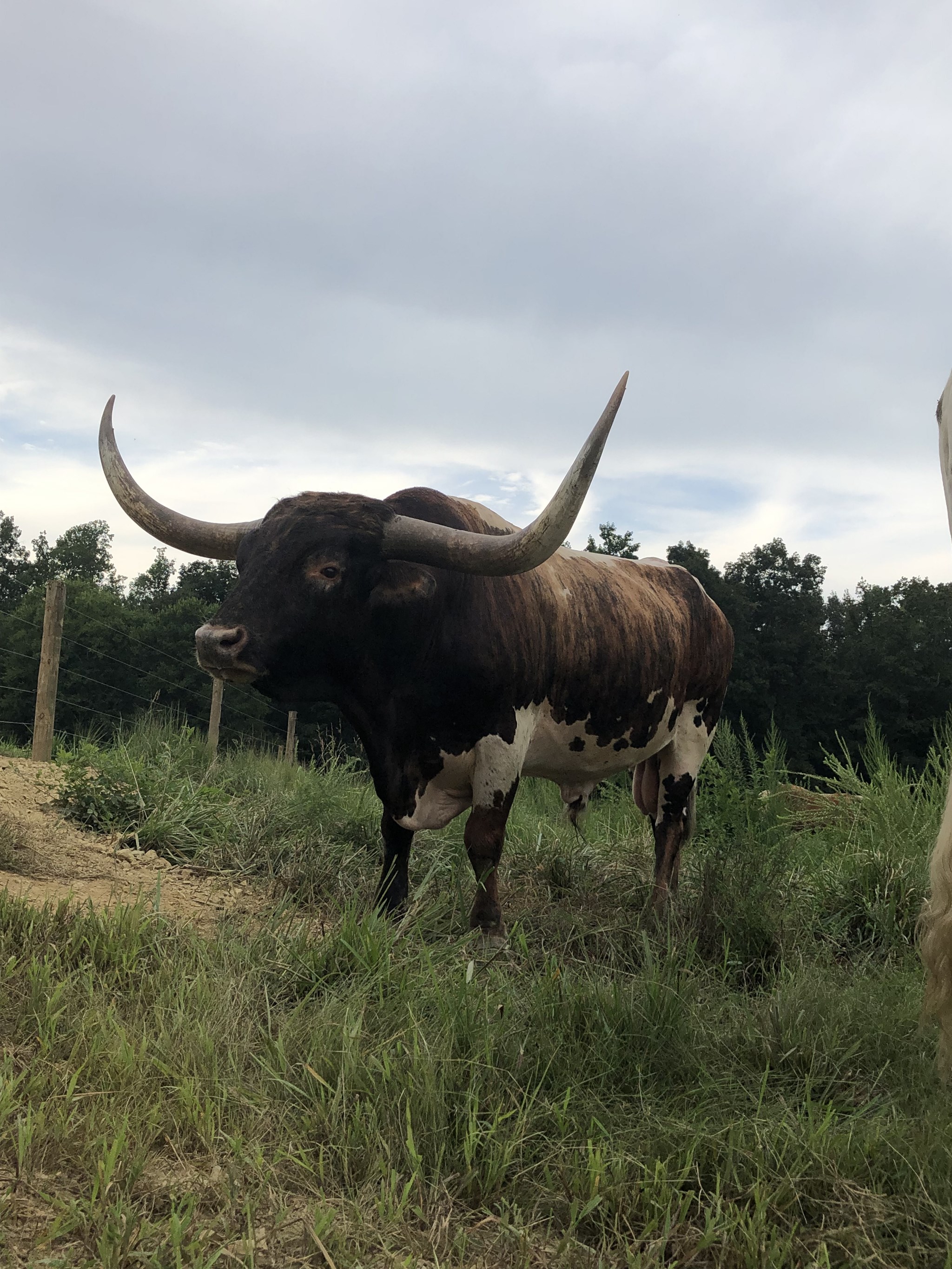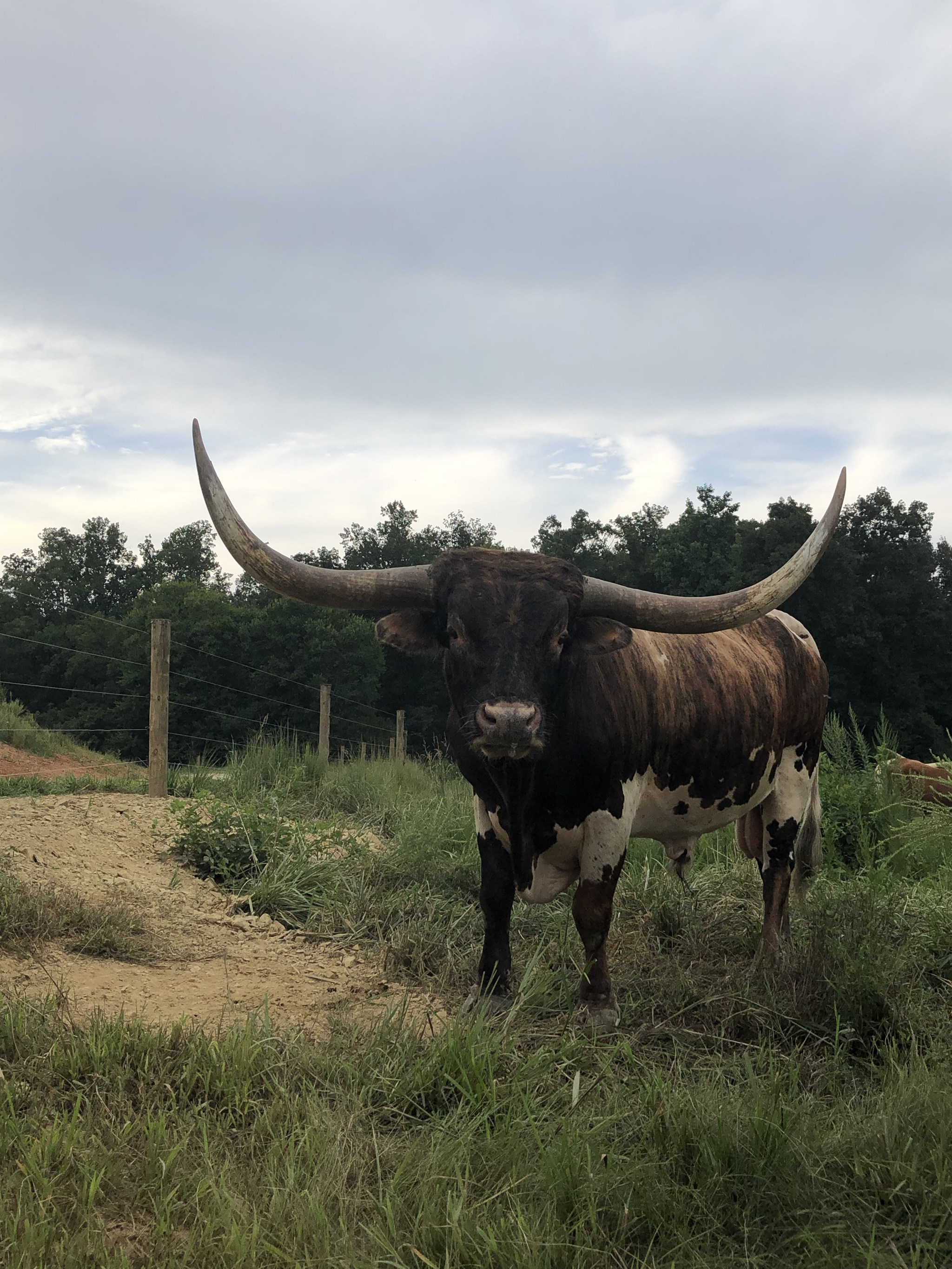 This bull takes a lot after his sire, he has a deep brindle color that is hard to miss in the pasture. His pedigree boasts several industry legends. A great young bull all around.